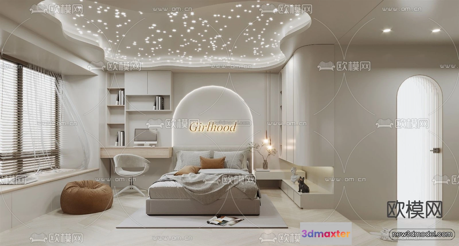3D Models / 3D Scenes / Interior / Bedroom / Cream Style Interior 3D Blocks – Bedroom 3D Model – 186 3D Max