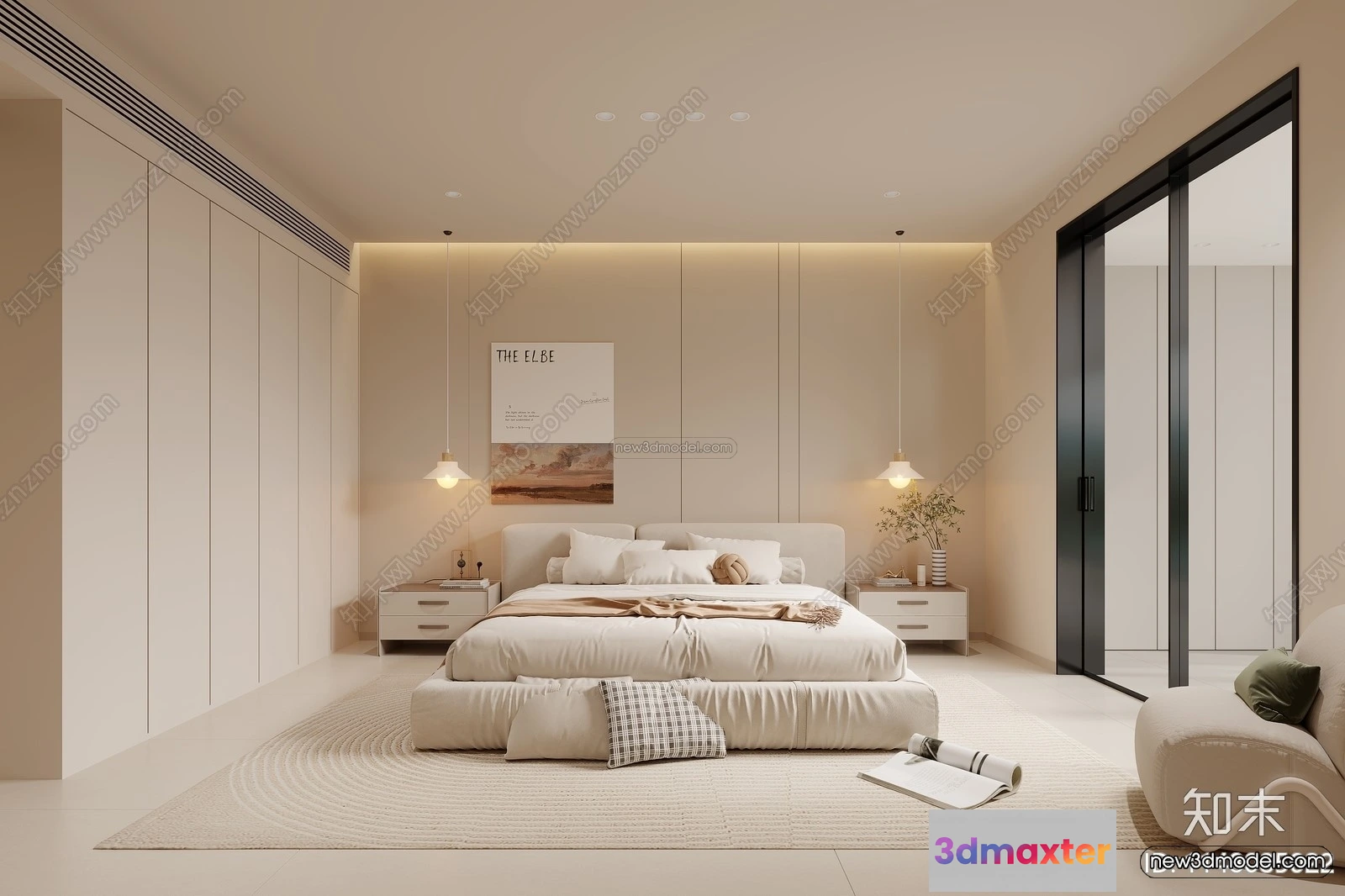 3D Models / 3D Scenes / Interior / Bedroom / Cream Style Interior 3D Blocks – Bedroom 3D Model – 188 3D Max