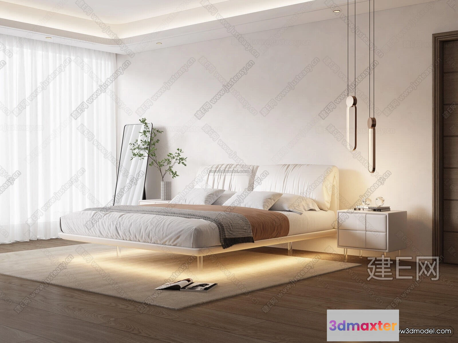 3D Models / 3D Scenes / Interior / Bedroom / Cream Style Interior 3D Blocks – Bedroom 3D Model – 190 3D Max