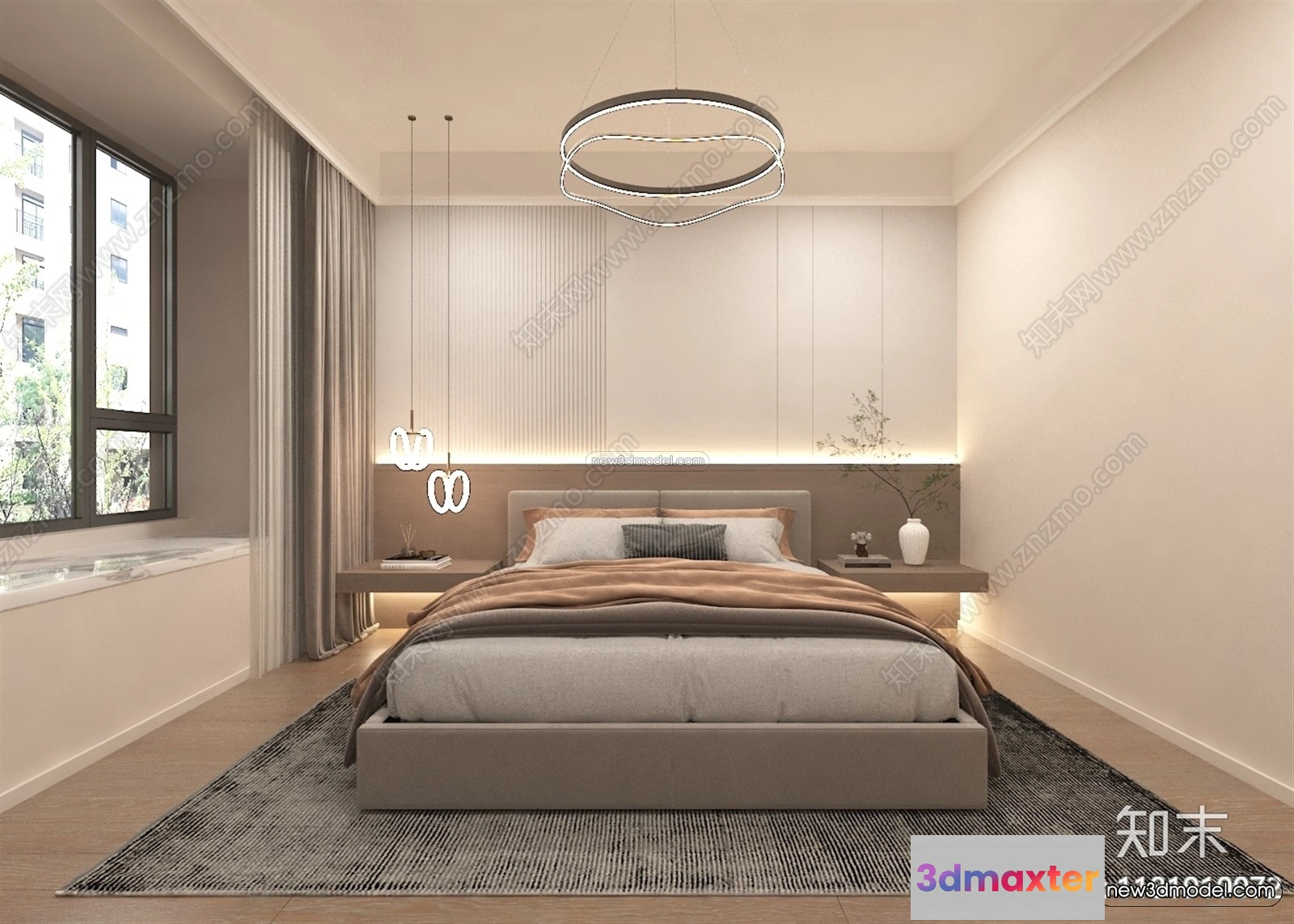 Cream Style Interior 3D Blocks – Bedroom 3D Model – 192 – Bedroom 3D Model – VRAY
