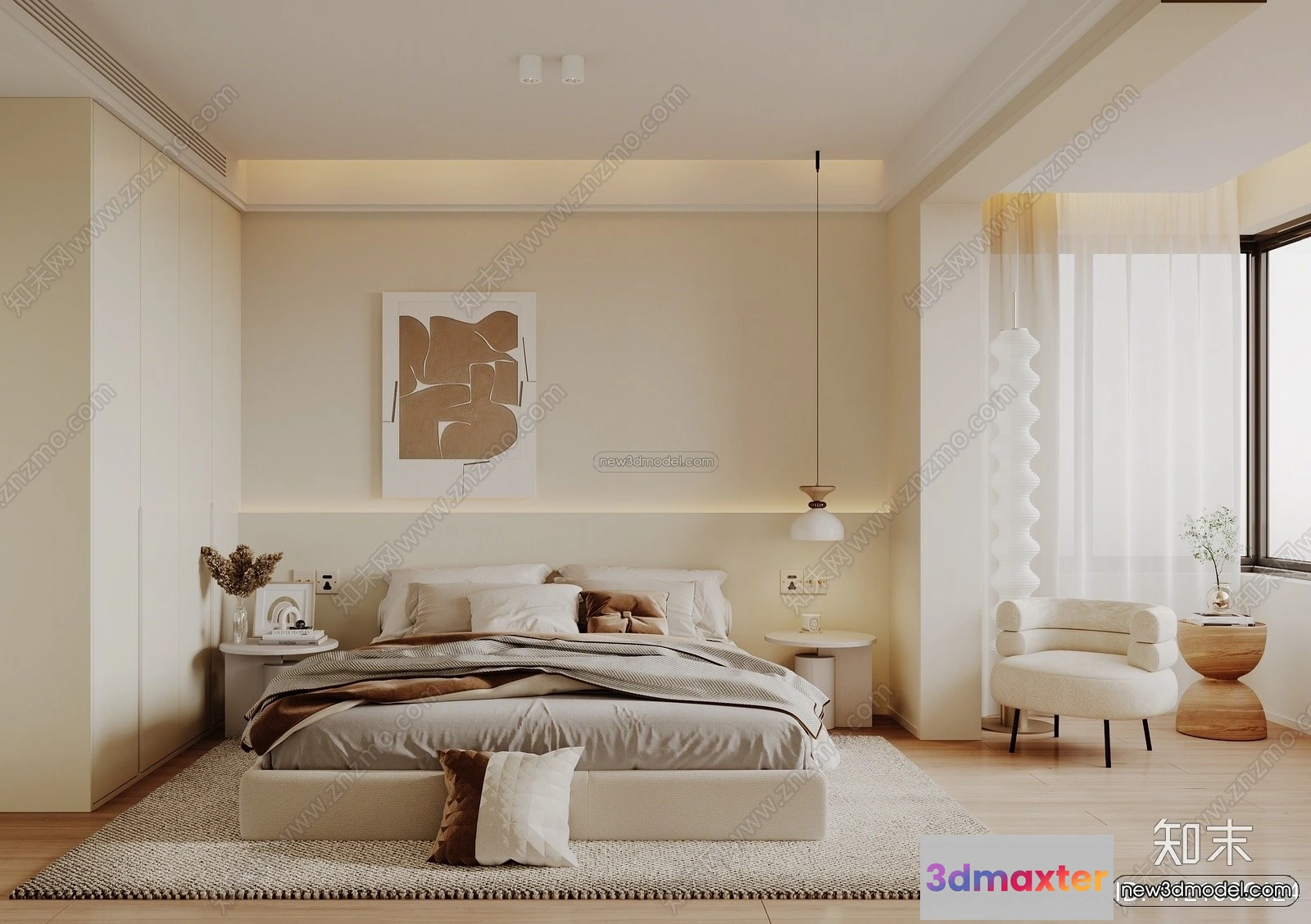 3D Models / 3D Scenes / Interior / Bedroom / Cream Style Interior 3D Blocks – Bedroom 3D Model – 194 3D Max