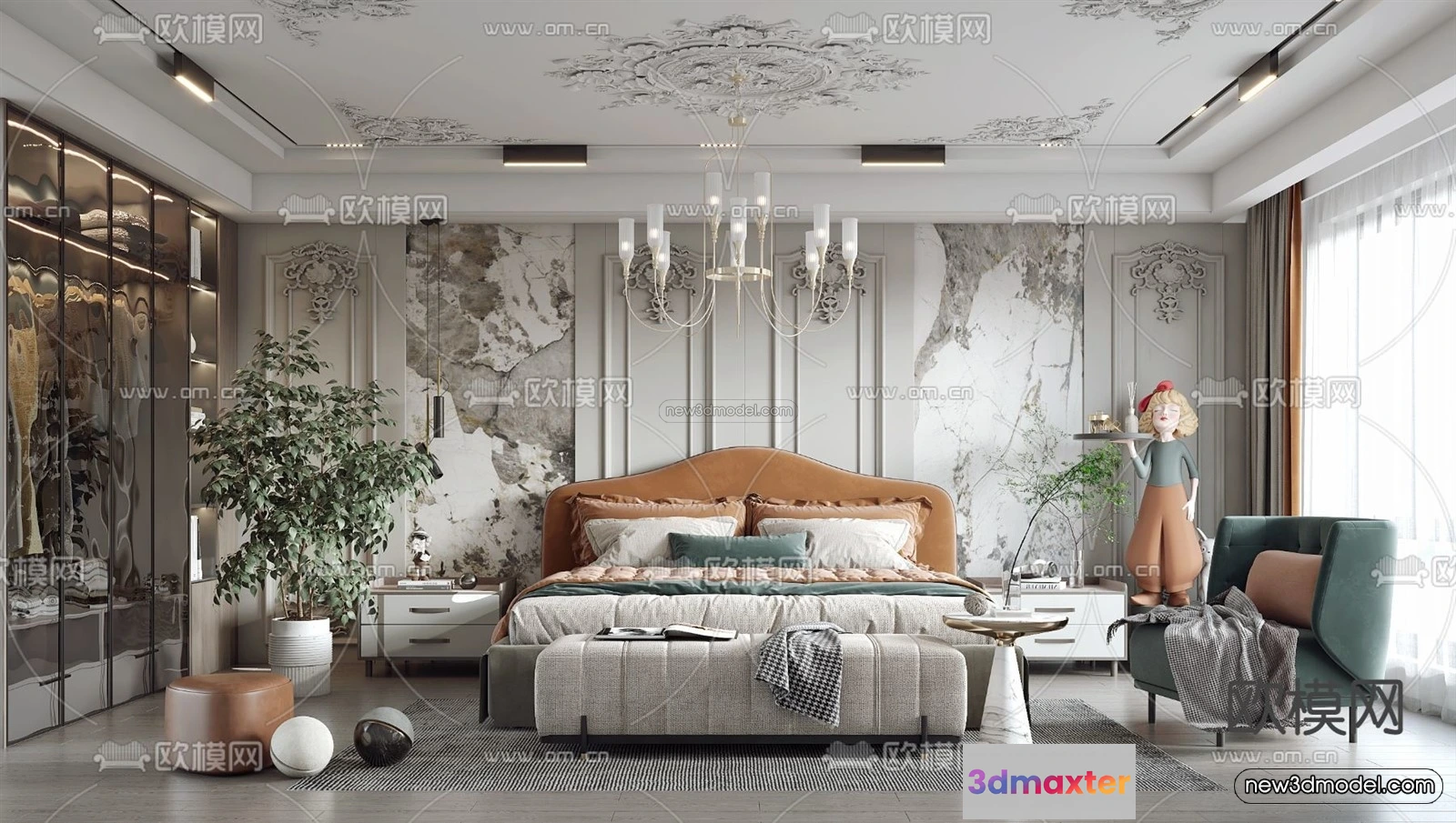 Cream Style Interior 3D Blocks – Bedroom 3D Model – 196 – Bedroom 3D Model – VRAY