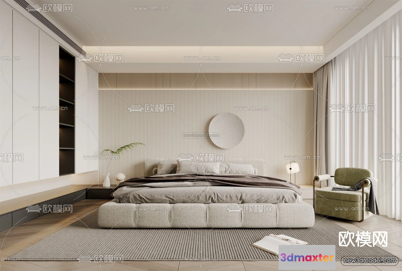 3D Models / 3D Scenes / Interior / Bedroom / Cream Style Interior 3D Blocks – Bedroom 3D Model – 201 3D Max