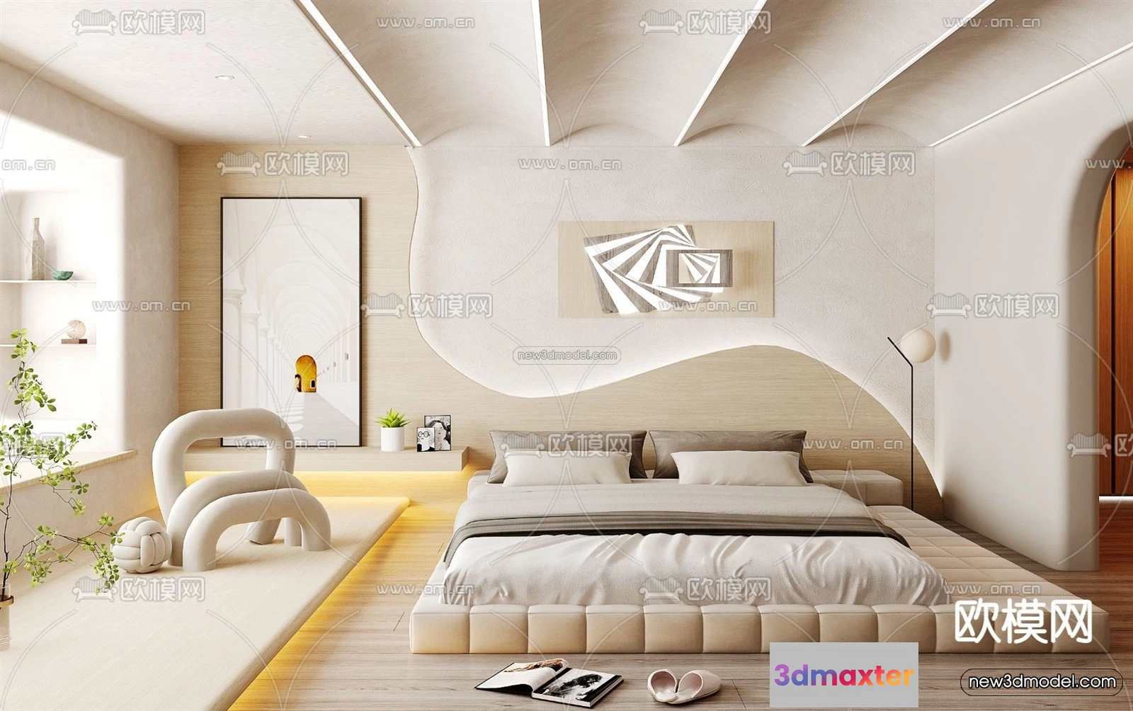 3D Models / 3D Scenes / Interior / Bedroom / Cream Style Interior 3D Blocks – Bedroom 3D Model – 202 3D Max