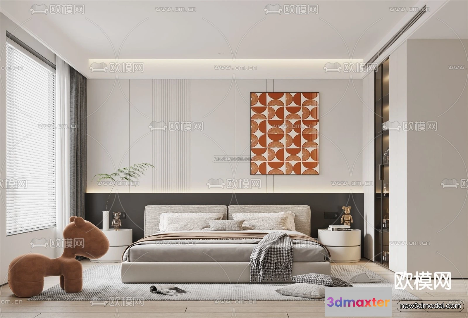 Cream Style Interior 3D Blocks – Bedroom 3D Model – 215 – Bedroom 3D Model – VRAY