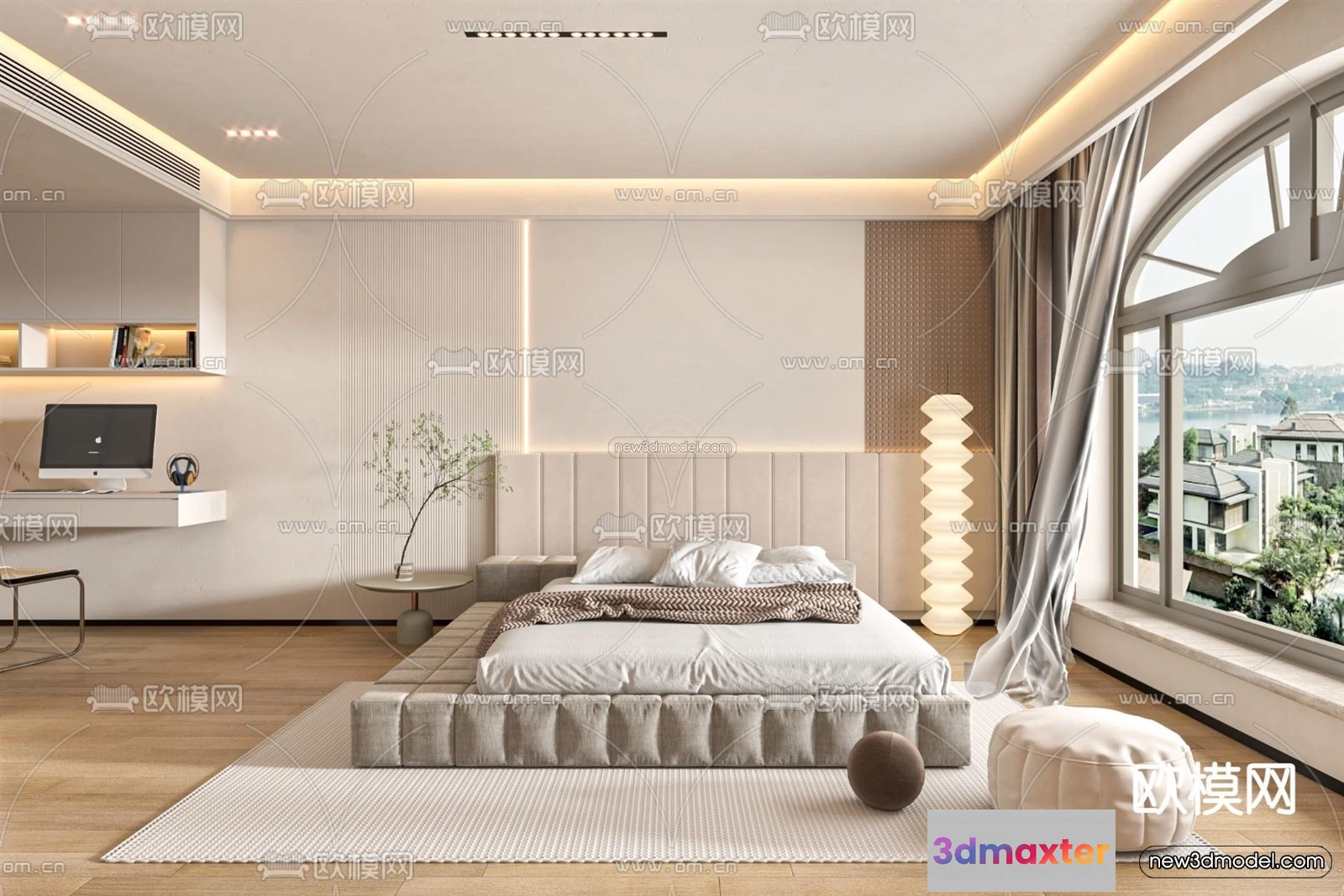 Cream Style Interior 3D Blocks – Bedroom 3D Model – 218 – Bedroom 3D Model – VRAY