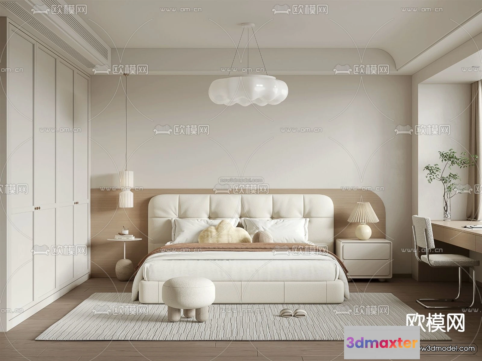 Cream Style Interior 3D Blocks – Bedroom 3D Model – 219 – Bedroom 3D Model – VRAY
