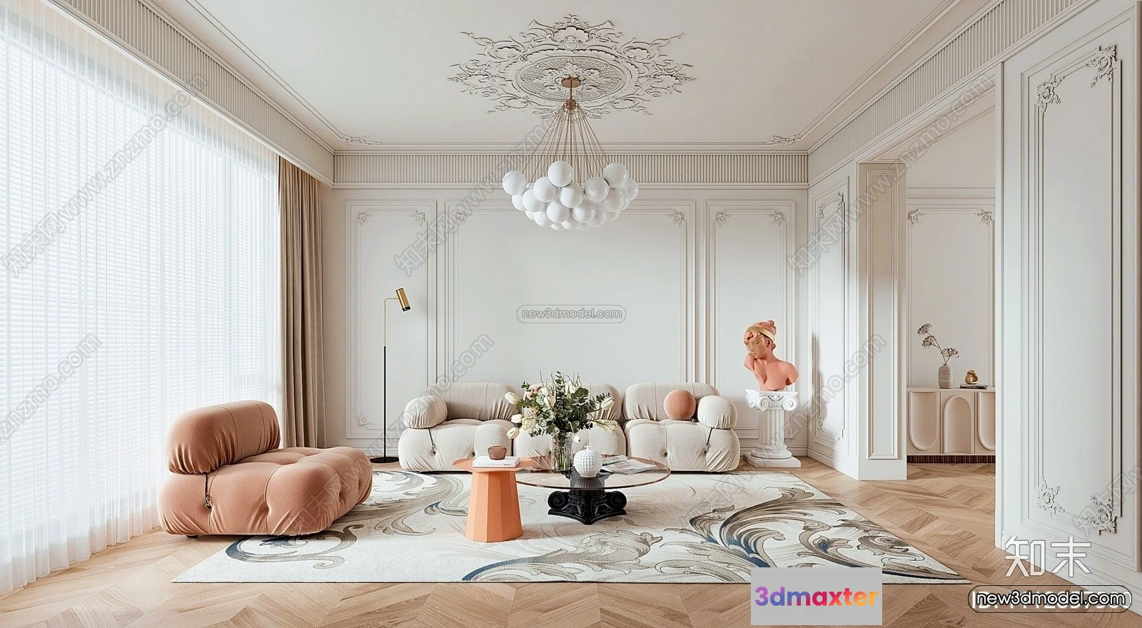 Cream Style Interior 3D Blocks – Bedroom 3D Model – 232 – Bedroom 3D Model – VRAY