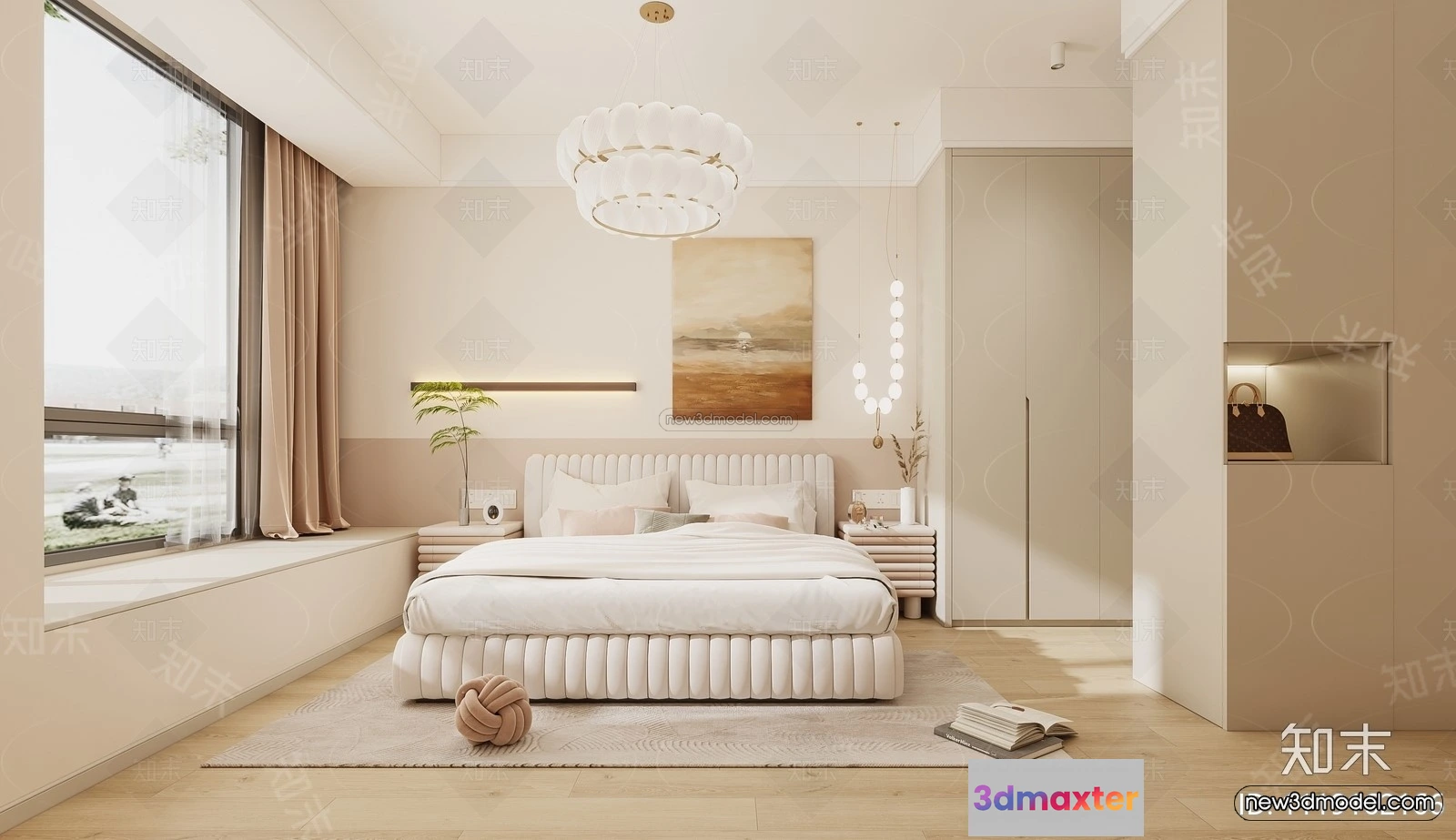 Cream Style Interior 3D Blocks – Bedroom 3D Model – 242 – Bedroom 3D Model – VRAY