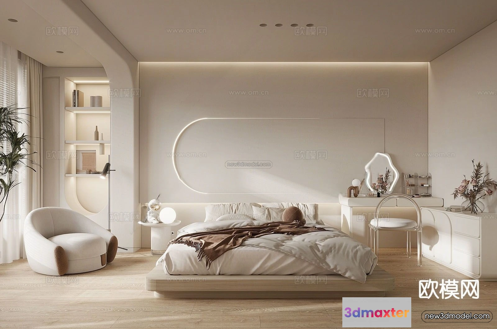 3D Models / 3D Scenes / Interior / Bedroom / Cream Style Interior 3D Blocks – Bedroom 3D Model – 245 3D Max