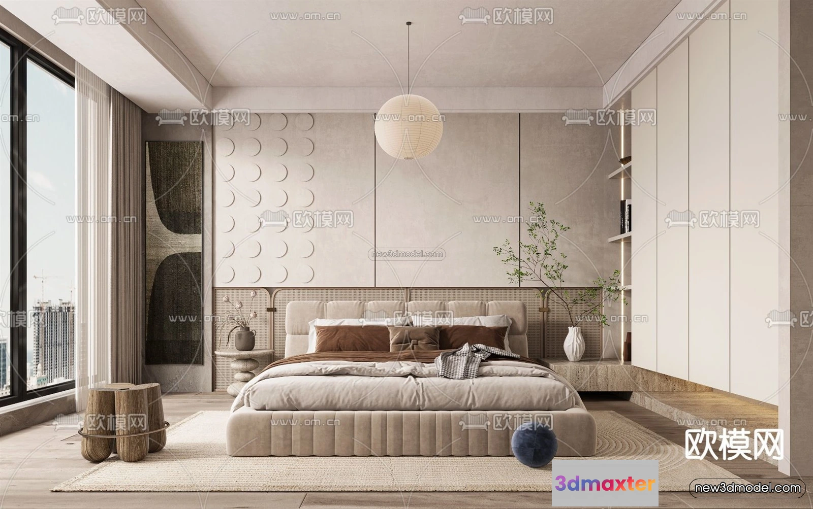Cream Style Interior 3D Blocks – Bedroom 3D Model – 258 – Bedroom 3D Model – VRAY