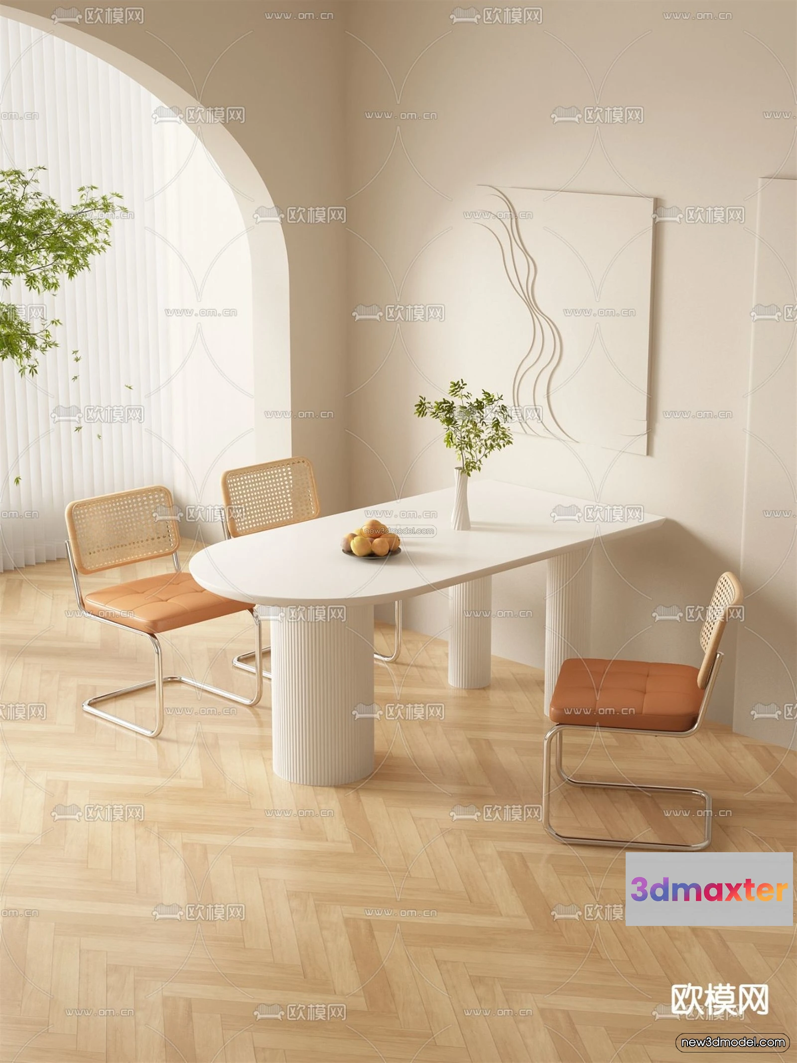 Cream Style Interior 3D Blocks – Dining Room 3D Model – 174 – Dining Room 3D Model – VRAY