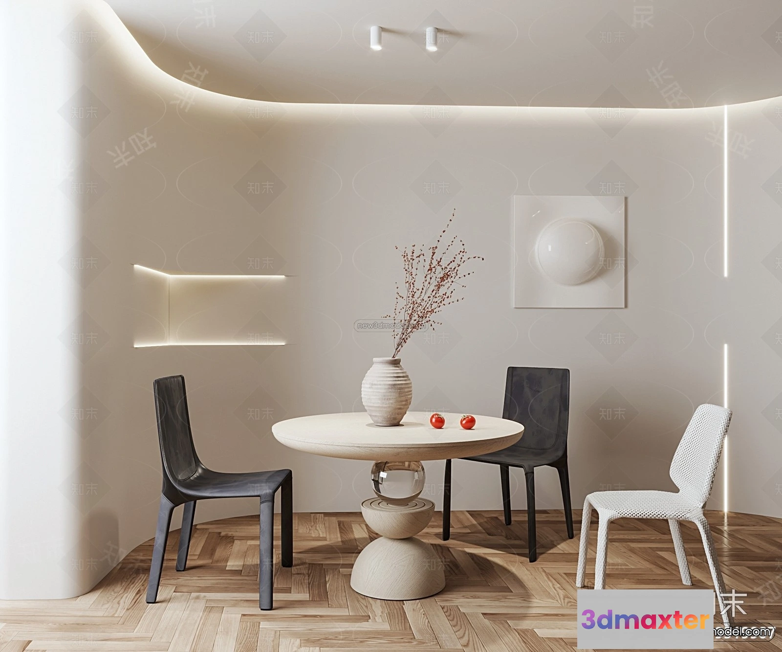 Cream Style Interior 3D Blocks – Dining Room 3D Model – 176 – Dining Room 3D Model – VRAY