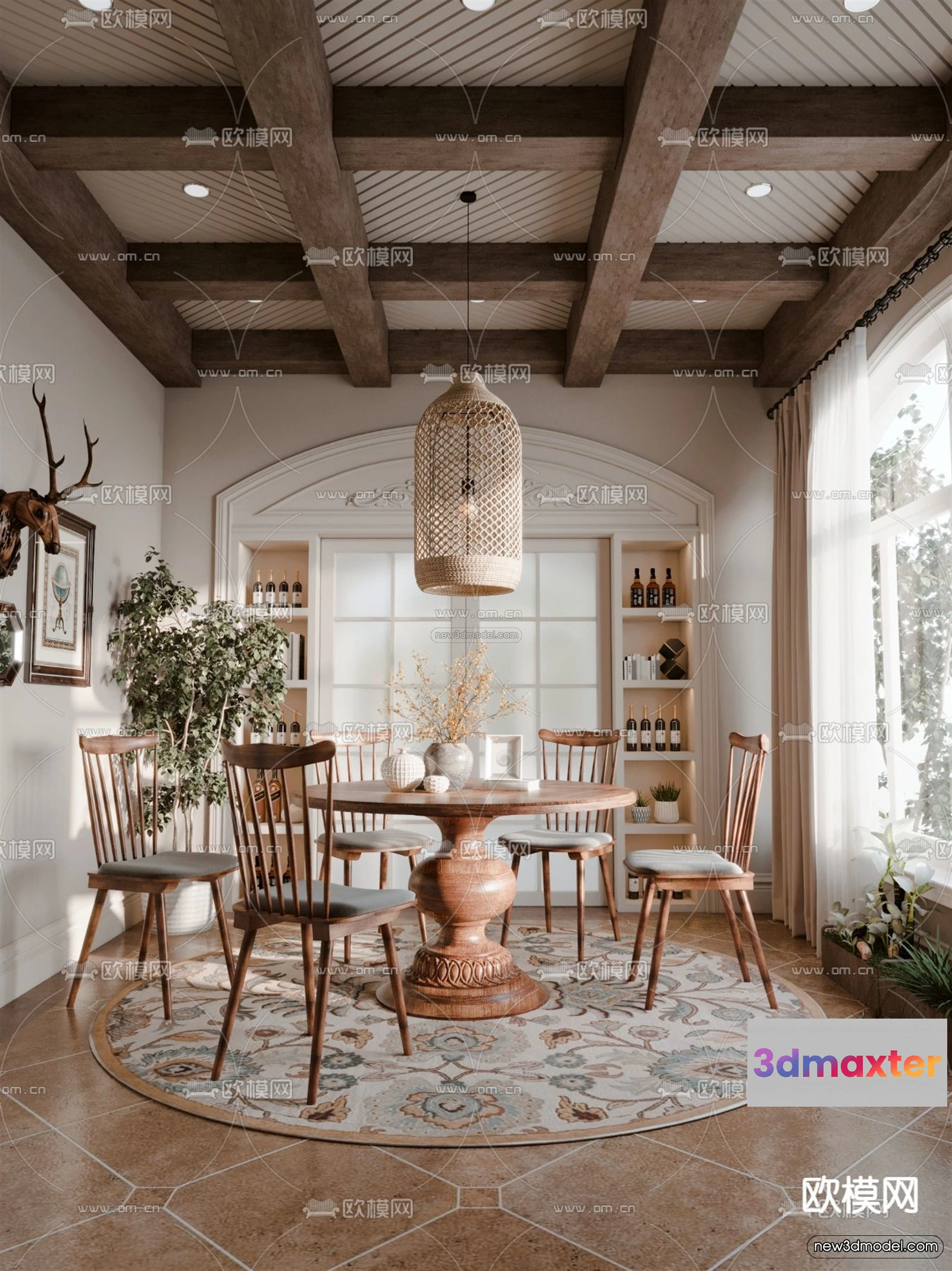 Cream Style Interior 3D Blocks – Dining Room 3D Model – 178 – Dining Room 3D Model – VRAY