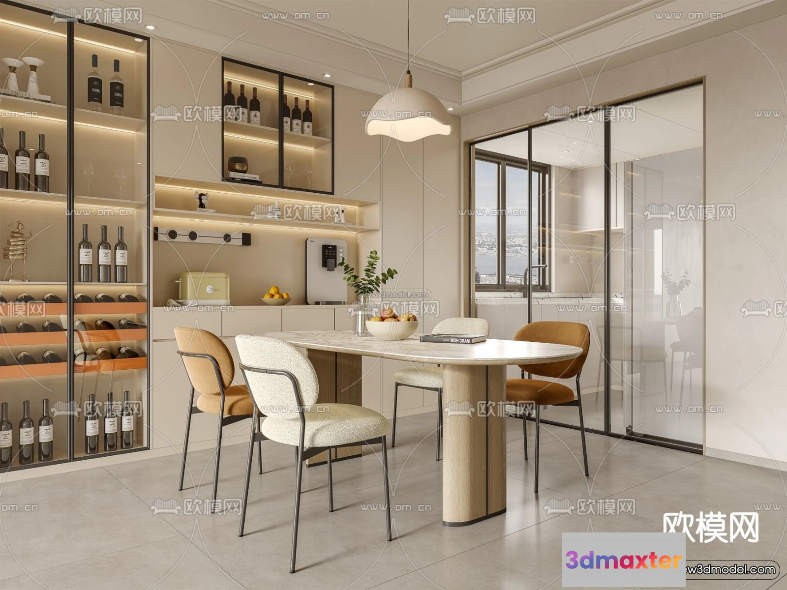 Cream Style Interior 3D Blocks – Dining Room 3D Model – 181 – Dining Room 3D Model – VRAY