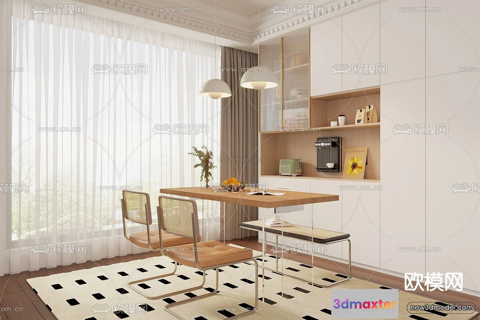 Cream Style Interior 3D Blocks – Dining Room 3D Model – 182 – Dining Room 3D Model – VRAY