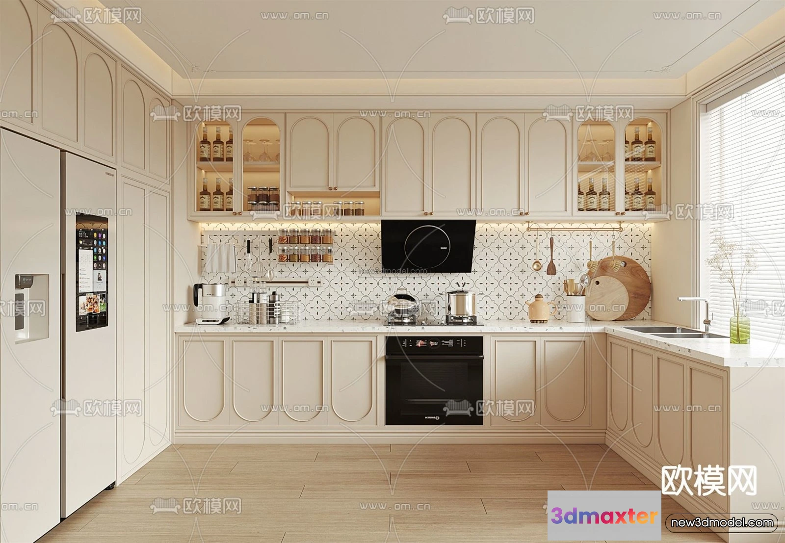 Cream Style Interior 3D Blocks – Kitchen 3D Model – 265 – Kitchen 3D Model – VRAY