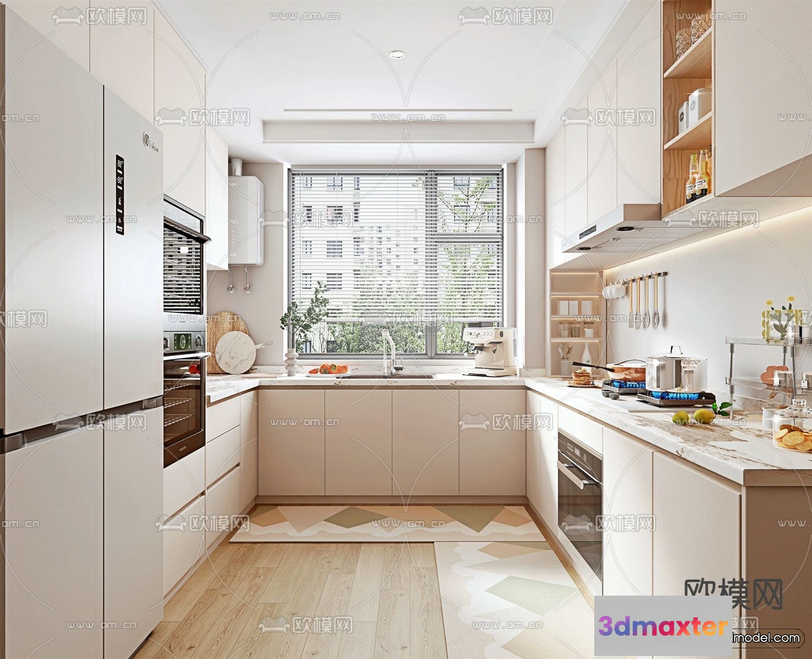Cream Style Interior 3D Blocks – Kitchen 3D Model – 268 – Kitchen 3D Model – VRAY