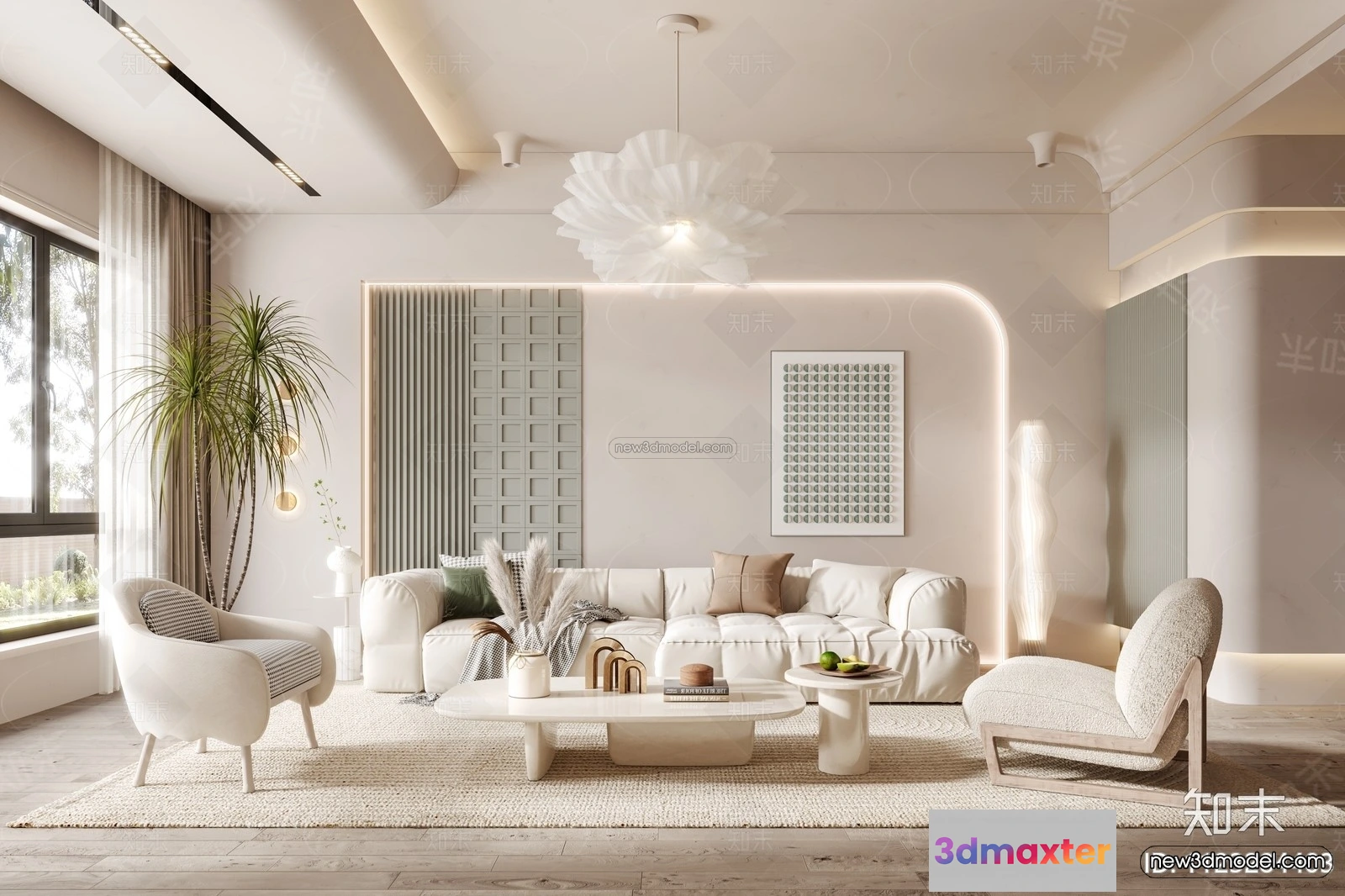 - Name: Cream Style Interior 3D Blocks – Living Room 3D Model – 008