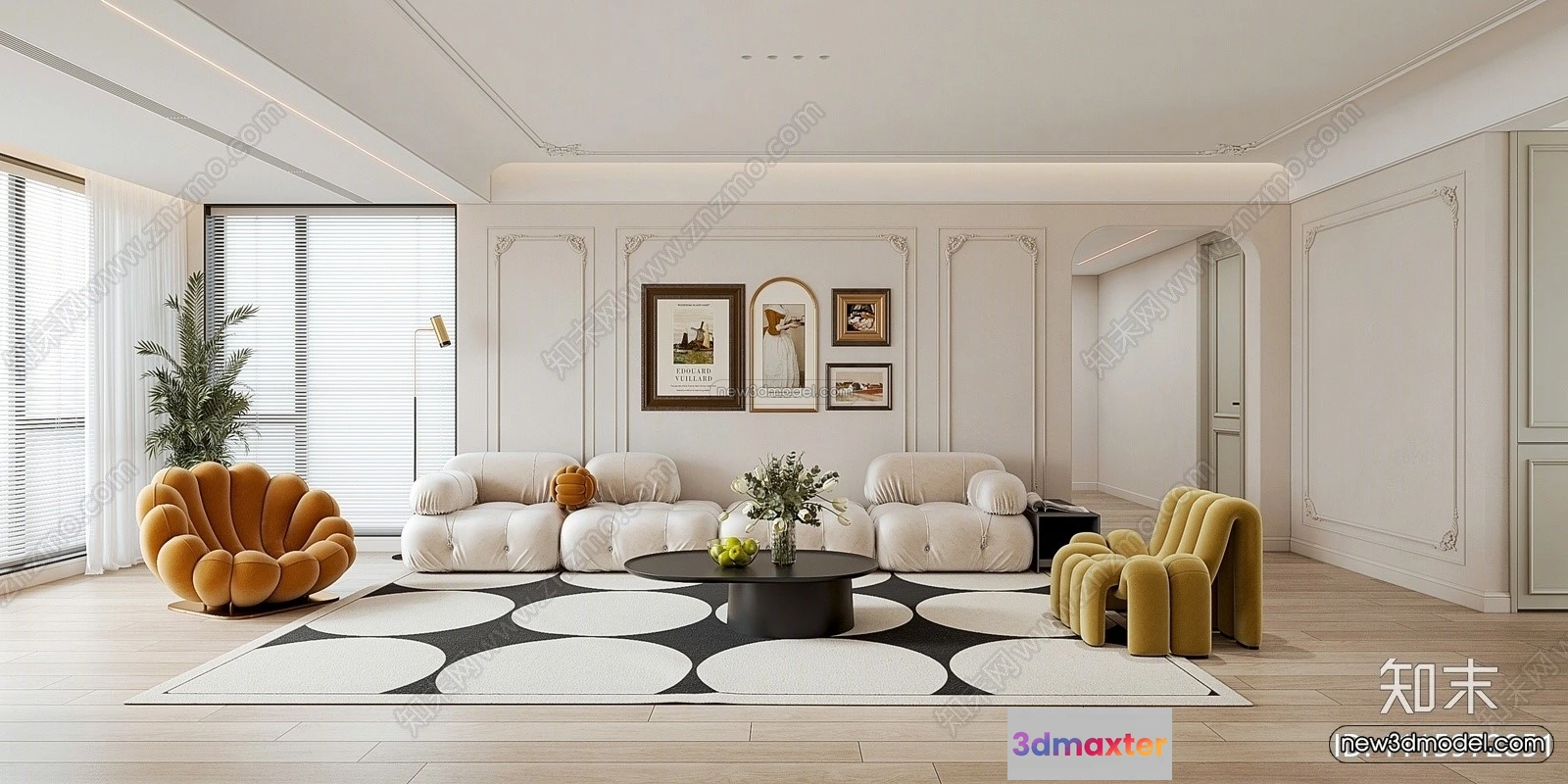 Cream Style Interior 3D Blocks – Living Room 3D Model – 009 – Living room 3D Model – VRAY