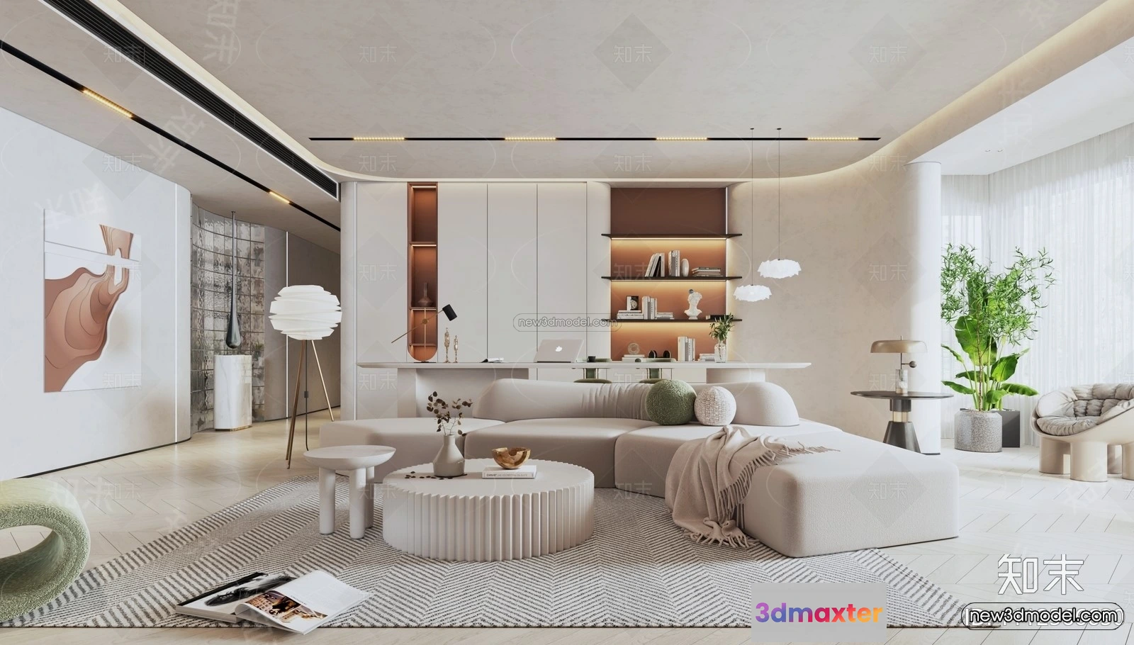 Cream Style Interior 3D Blocks – Living Room 3D Model – 013 – Living room 3D Model – VRAY