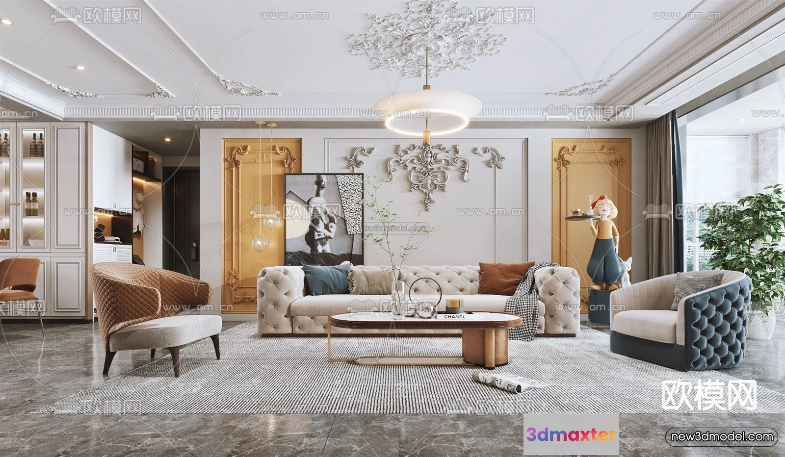 Cream Style Interior 3D Blocks – Living Room 3D Model – 019 – Living room 3D Model – VRAY