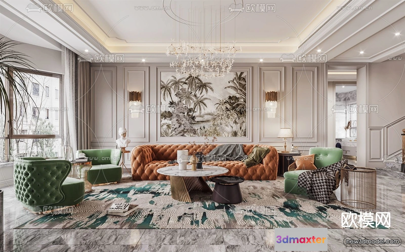Cream Style Interior 3D Blocks – Living Room 3D Model – 026 – Living room 3D Model – VRAY