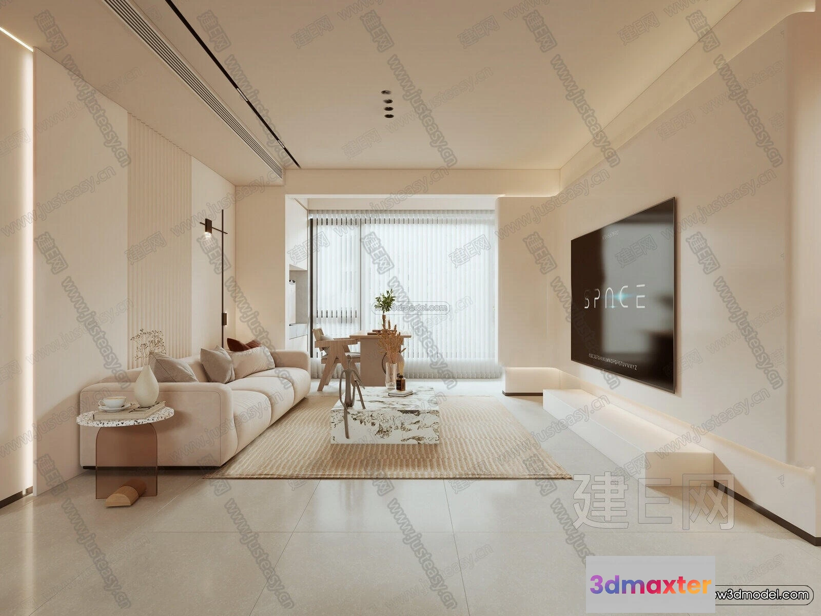 Cream Style Interior 3D Blocks – Living Room 3D Model – 031 – Living room 3D Model – VRAY