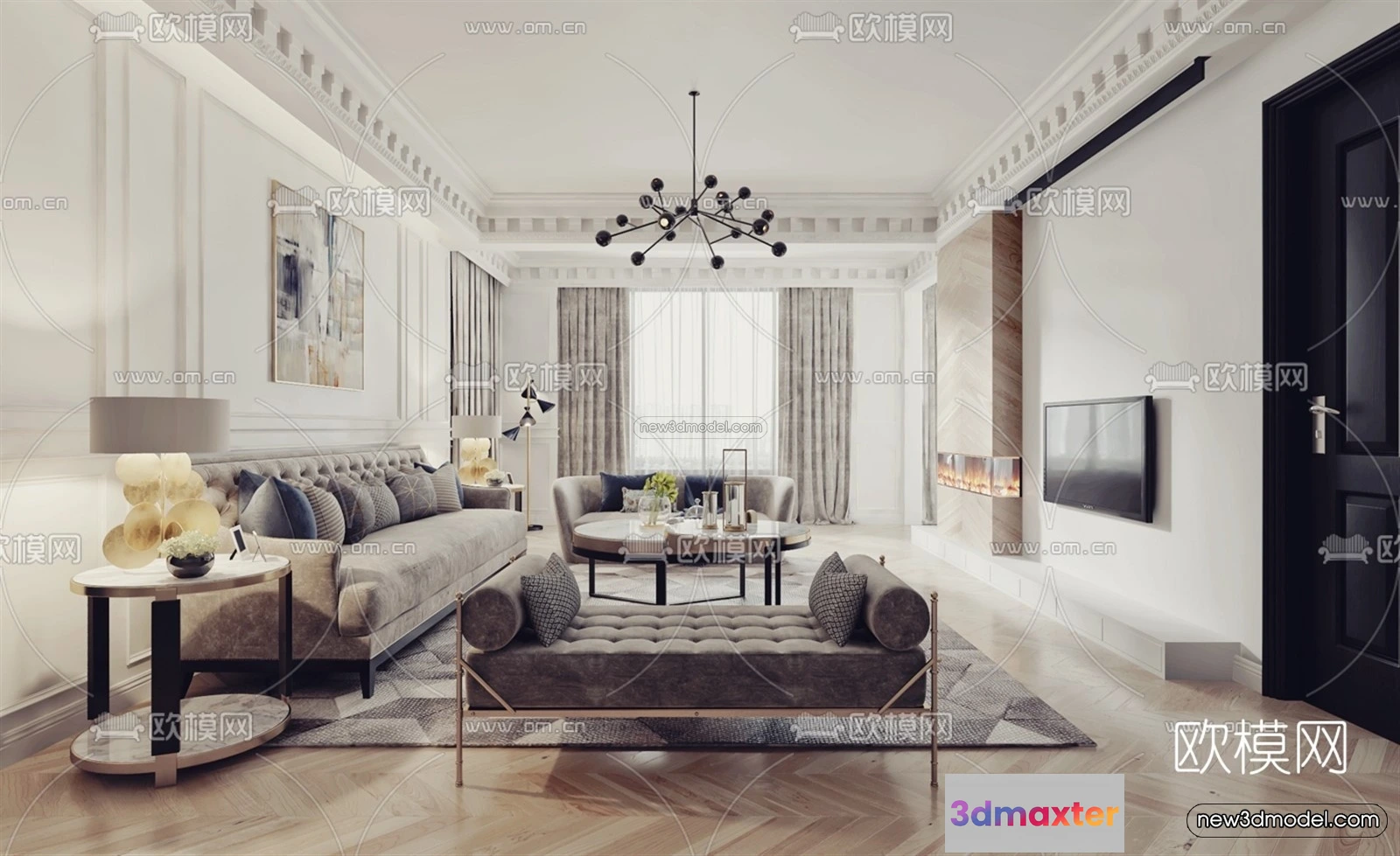 Cream Style Interior 3D Blocks – Living Room 3D Model – 034 – Living room 3D Model – VRAY