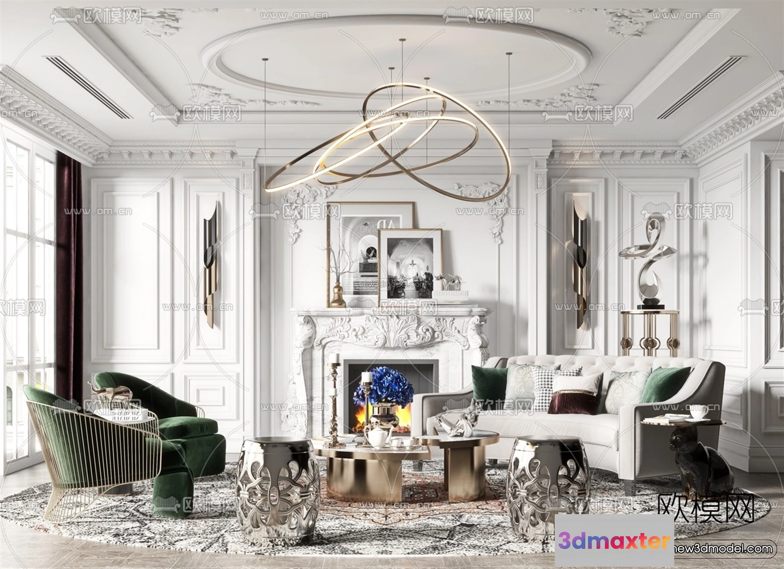 Cream Style Interior 3D Blocks – Living Room 3D Model – 038 – Living room 3D Model – VRAY