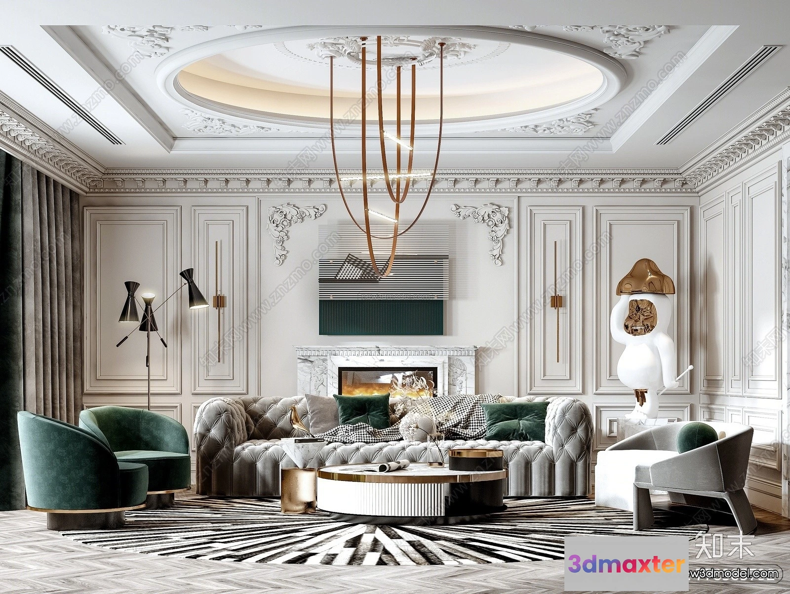 Cream Style Interior 3D Blocks – Living Room 3D Model – 040 – Living room 3D Model – VRAY