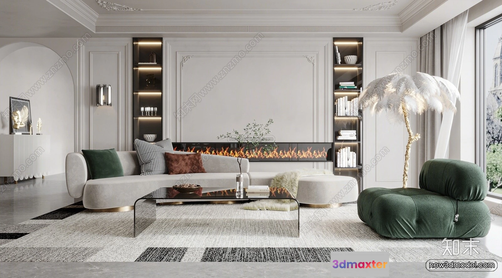 Cream Style Interior 3D Blocks – Living Room 3D Model – 041 – Living room 3D Model – VRAY