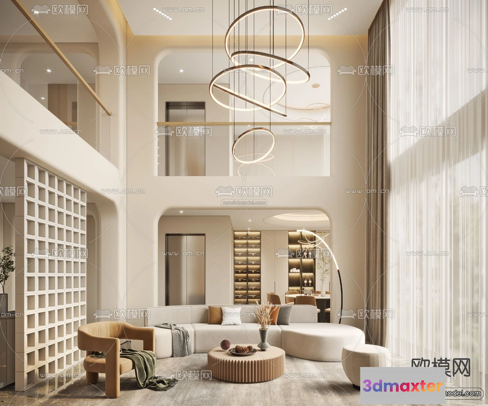 Cream Style Interior 3D Blocks – Living Room 3D Model – 050 – Living room 3D Model – VRAY