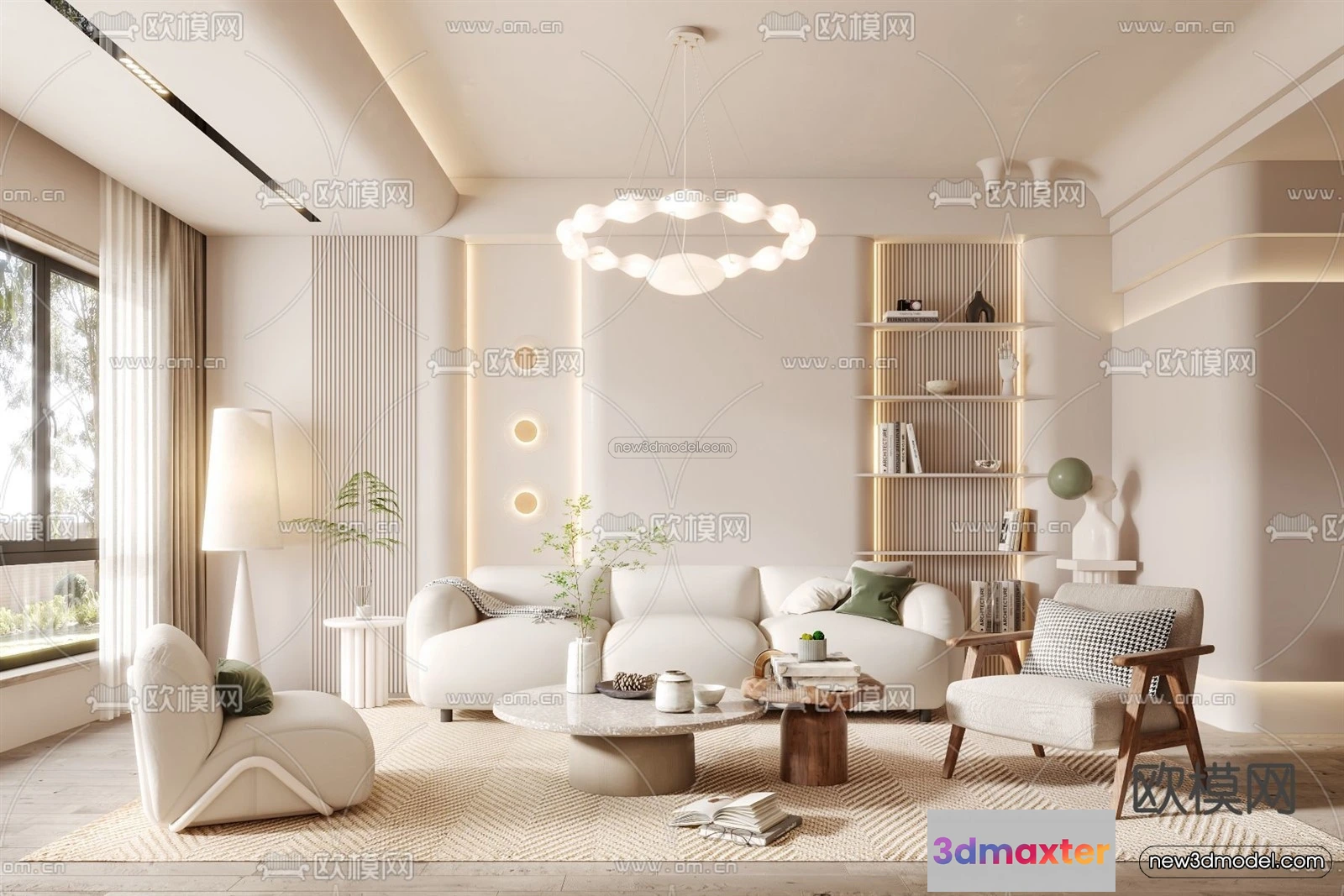 Cream Style Interior 3D Blocks – Living Room 3D Model – 054 – Living room 3D Model – VRAY