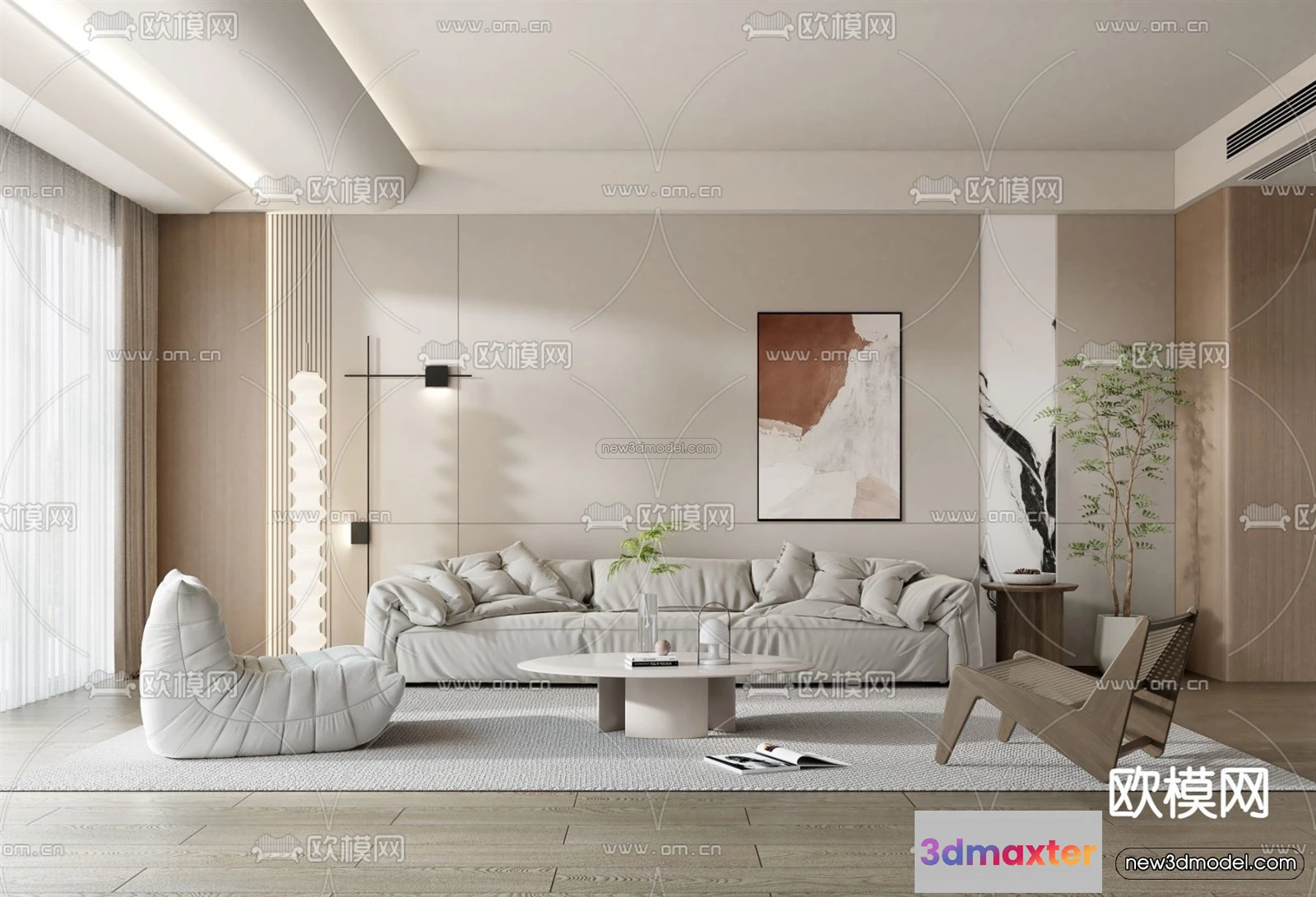Cream Style Interior 3D Blocks – Living Room 3D Model – 059 – Living room 3D Model – VRAY