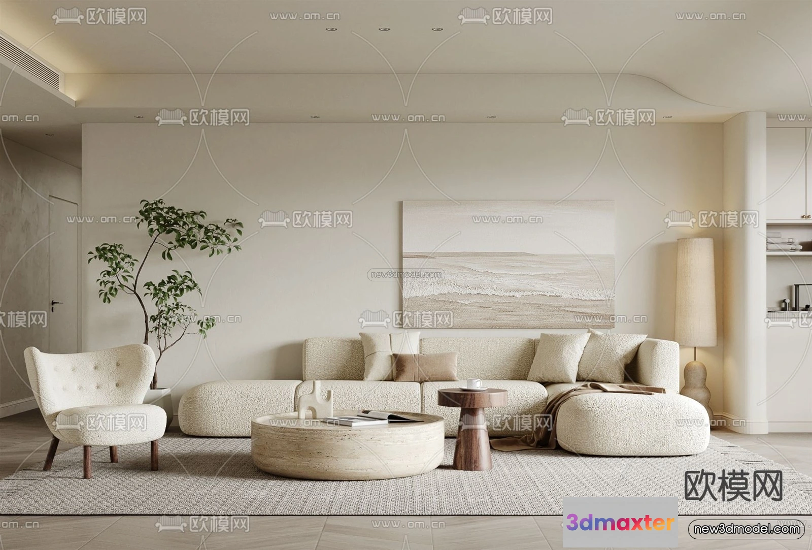 Cream Style Interior 3D Blocks – Living Room 3D Model – 076 – Living room 3D Model – VRAY