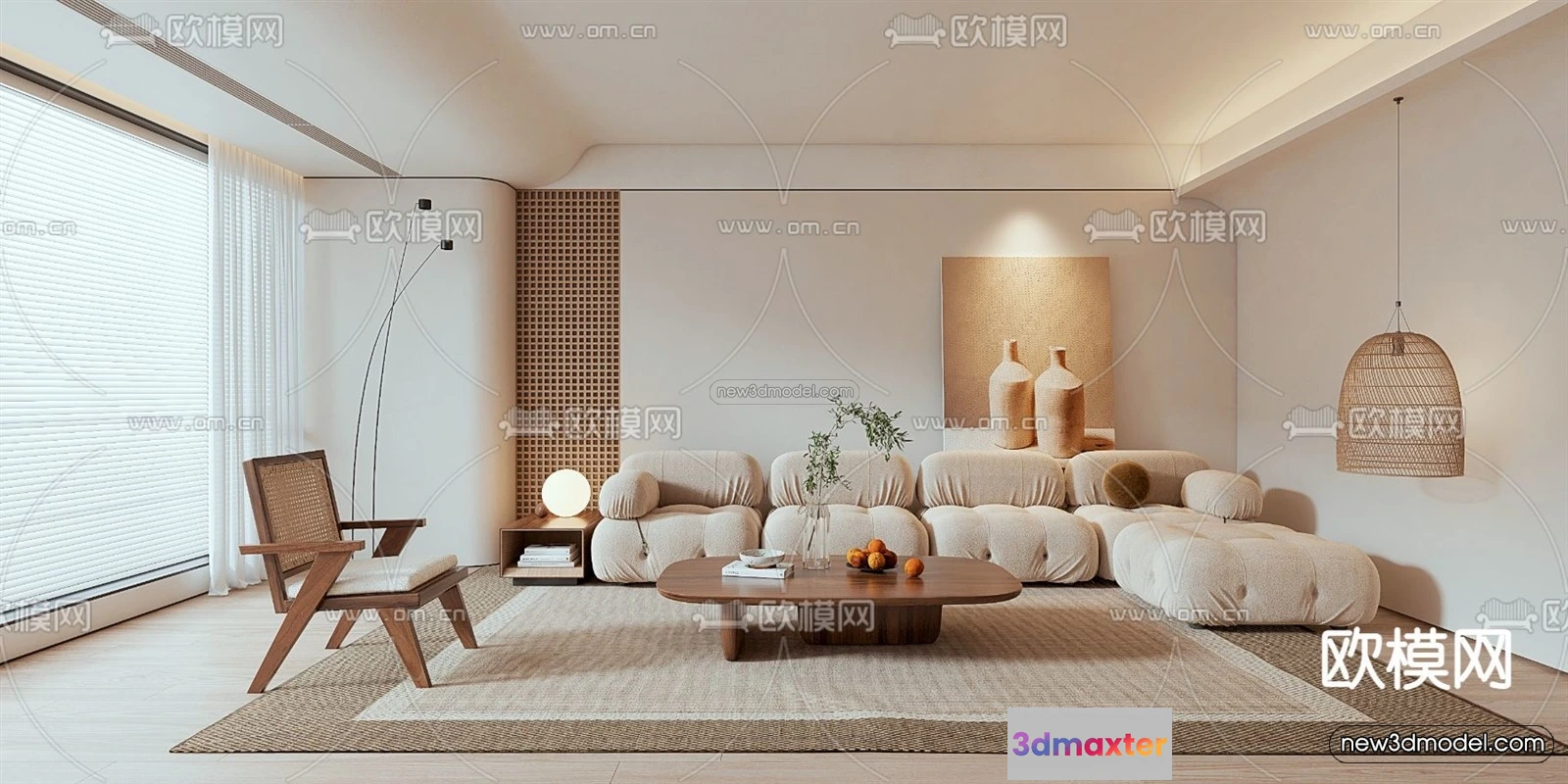 - Name: Cream Style Interior 3D Blocks – Living Room 3D Model – 078