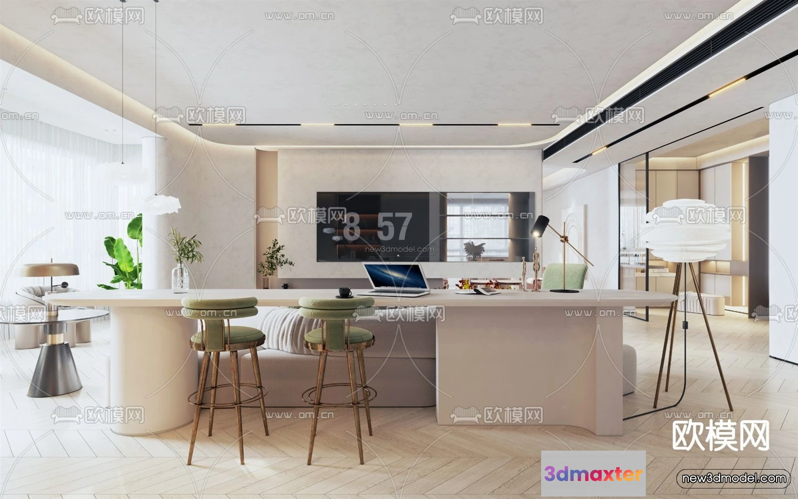 Cream Style Interior 3D Blocks – Living Room 3D Model – 083 – Living room 3D Model – VRAY