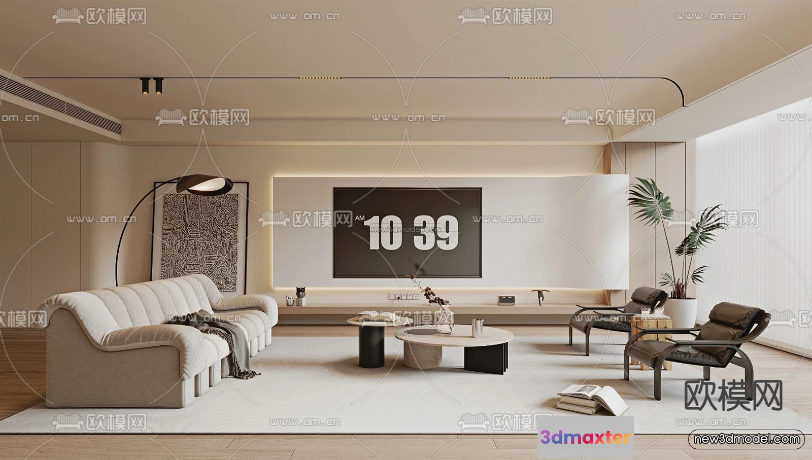 Cream Style Interior 3D Blocks – Living Room 3D Model – 094 – Living room 3D Model – VRAY