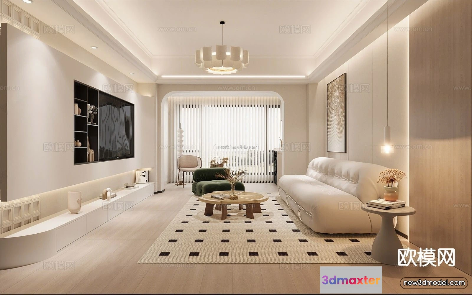 - Name: Cream Style Interior 3D Blocks – Living Room 3D Model – 097