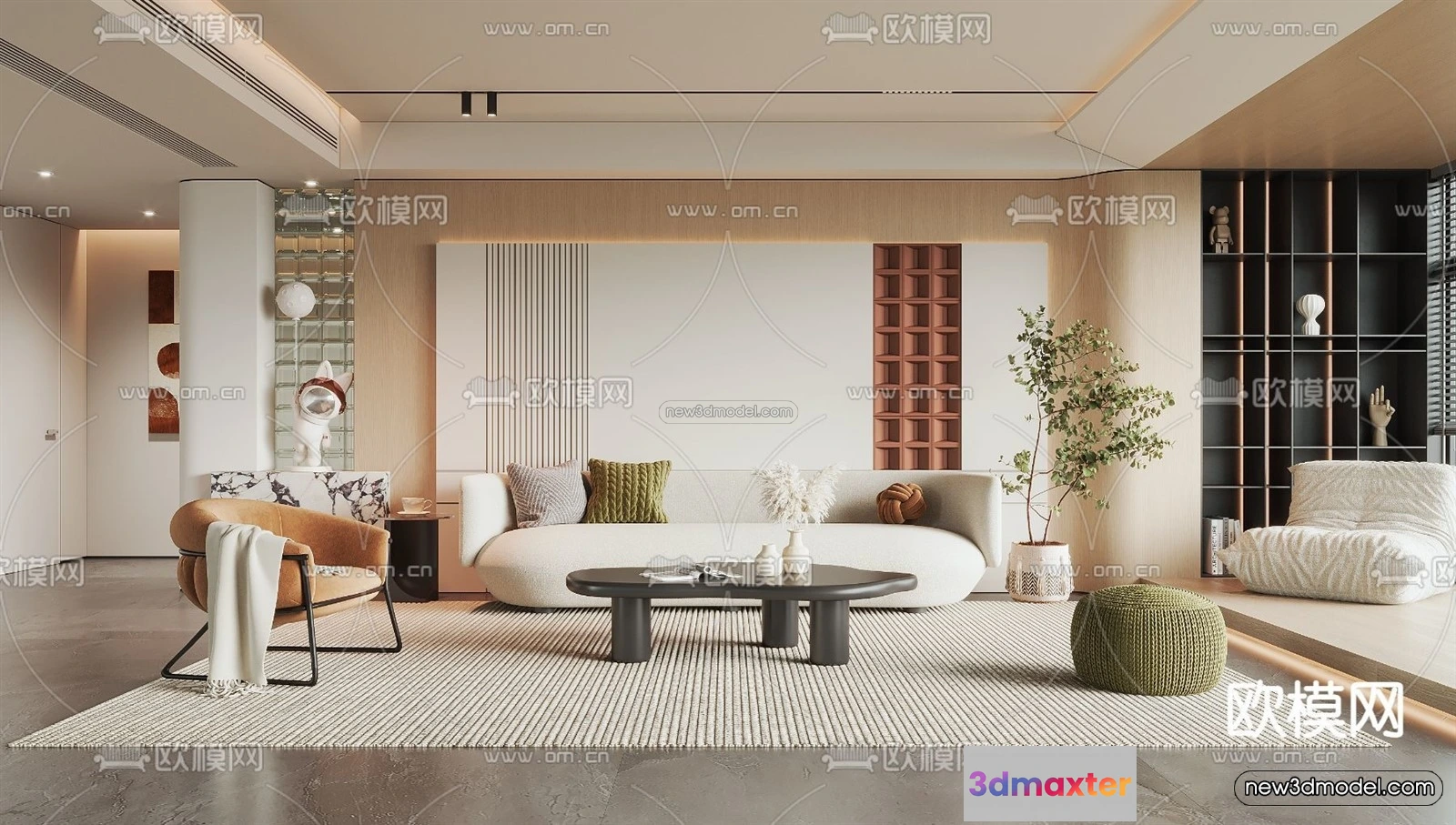 Cream Style Interior 3D Blocks – Living Room 3D Model – 098 – Living room 3D Model – VRAY