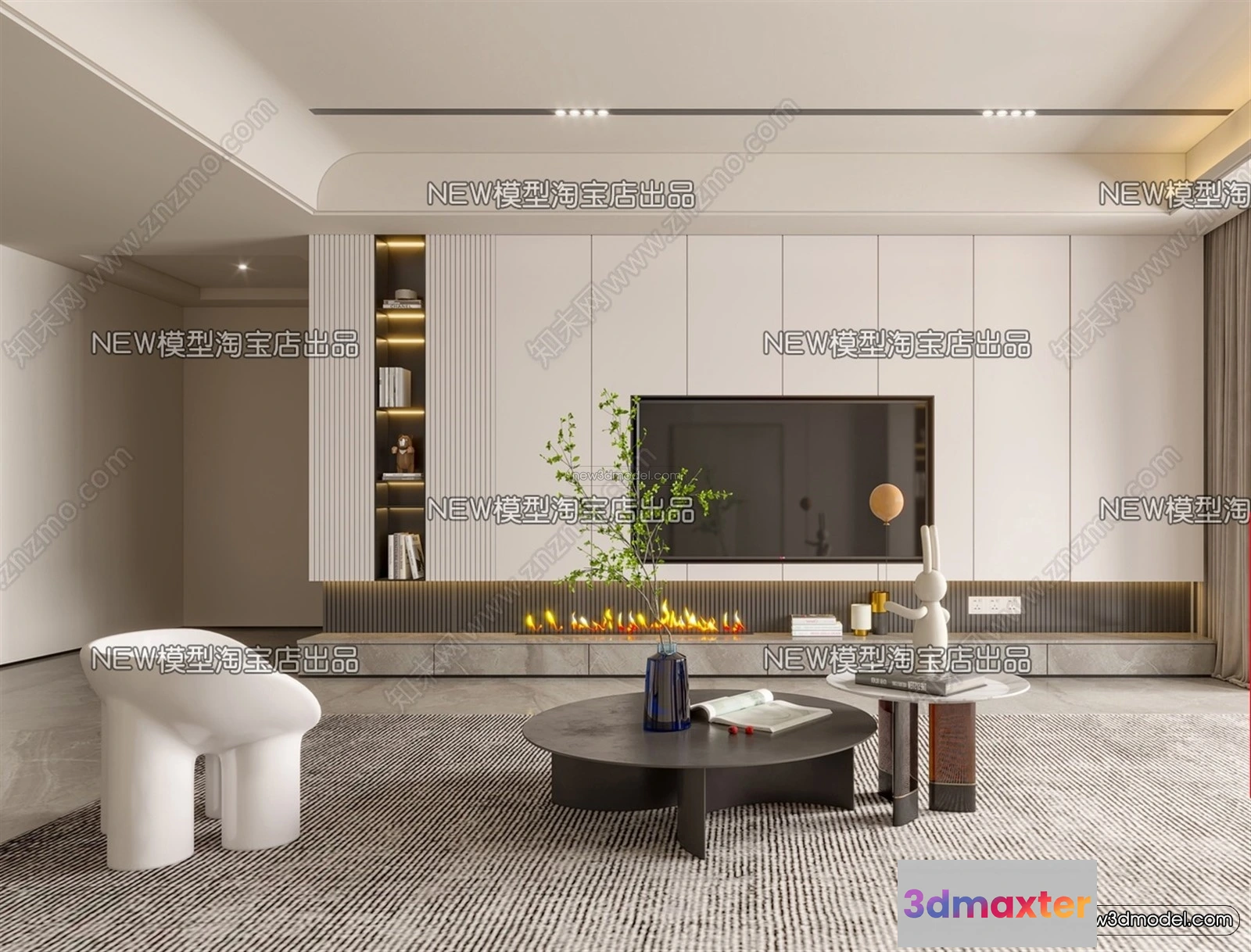 Cream Style Interior 3D Blocks – Living Room 3D Model – 106 – Living room 3D Model – VRAY