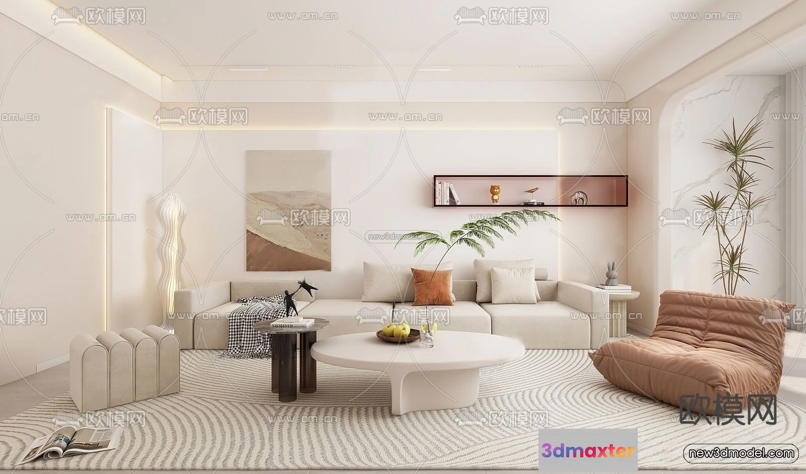 - Name: Cream Style Interior 3D Blocks – Living Room 3D Model – 111