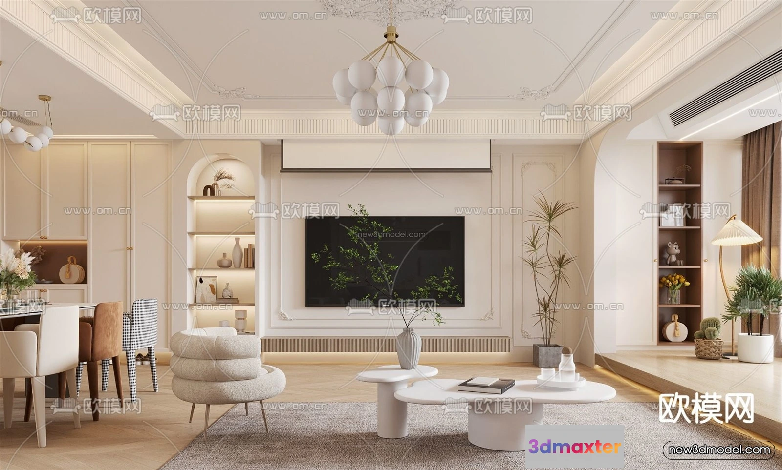 Cream Style Interior 3D Blocks – Living Room 3D Model – 112 – Living room 3D Model – VRAY