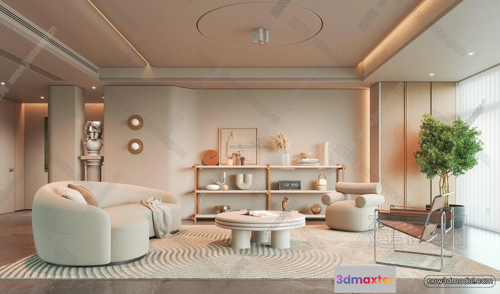 - Name: Cream Style Interior 3D Blocks – Living Room 3D Model – 119