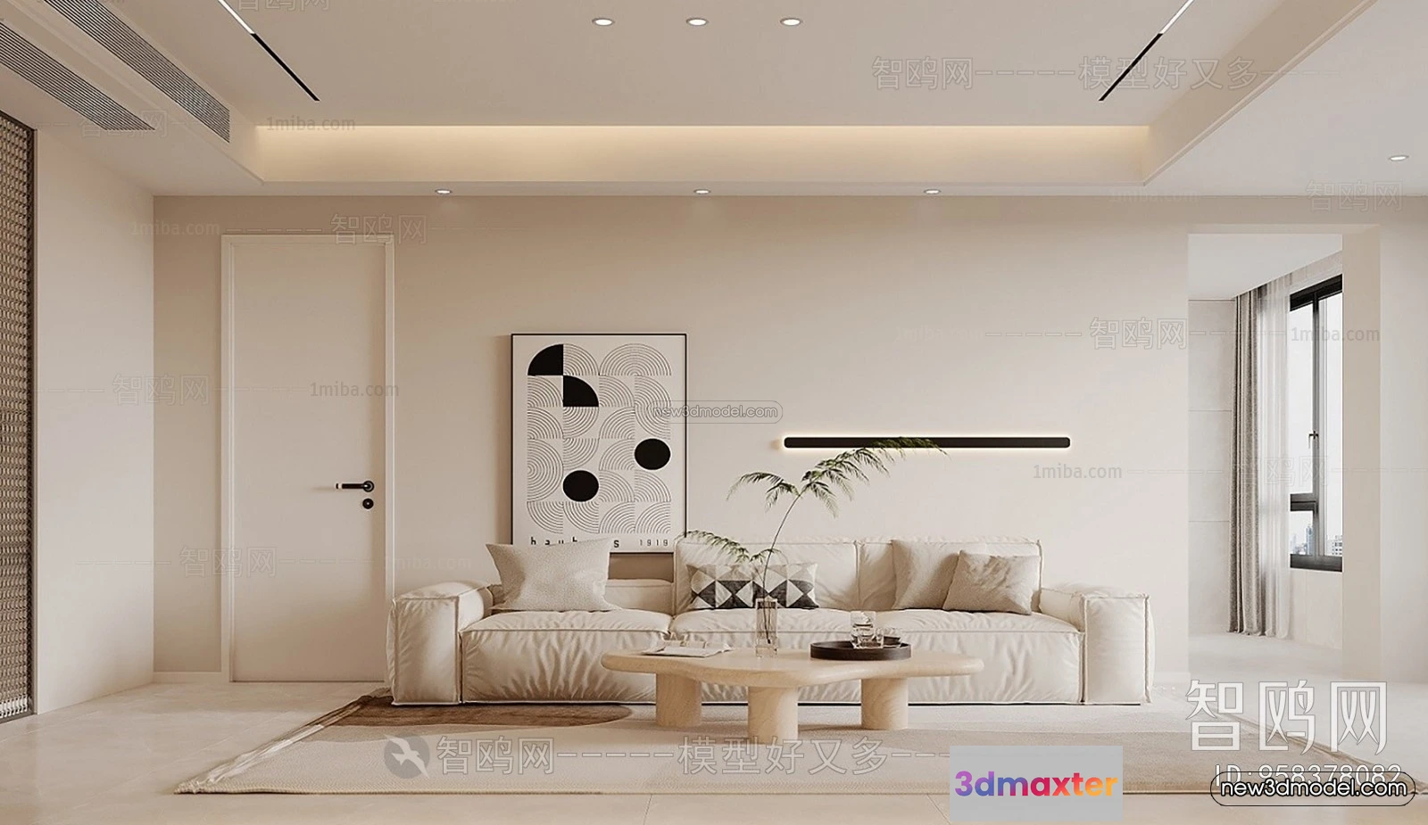 - Name: Cream Style Interior 3D Blocks – Living Room 3D Model – 123