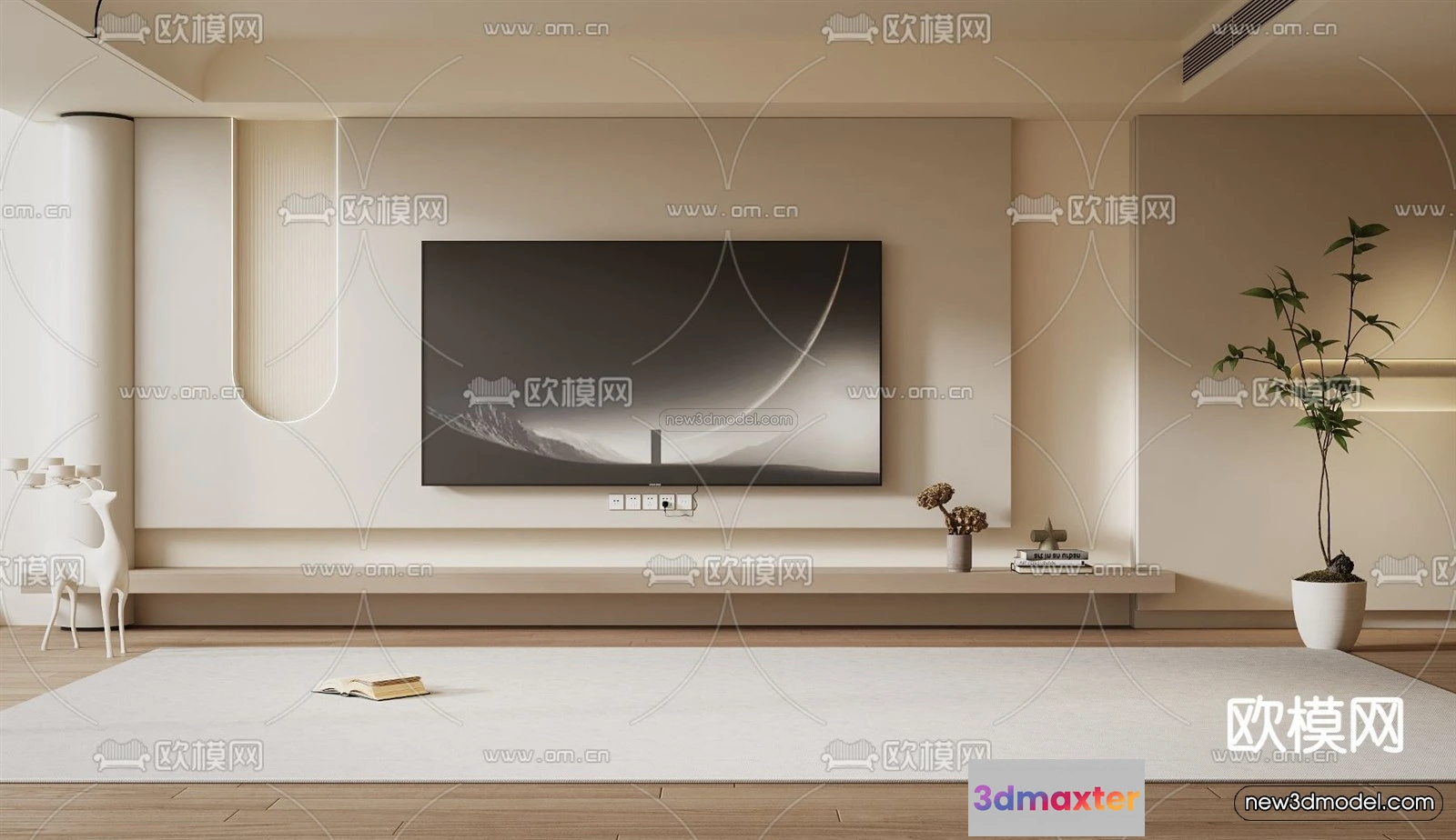3D Models / 3D Scenes / Interior / Living Room / Cream Style Interior 3D Blocks – Living Room 3D Model – 124 3D Max