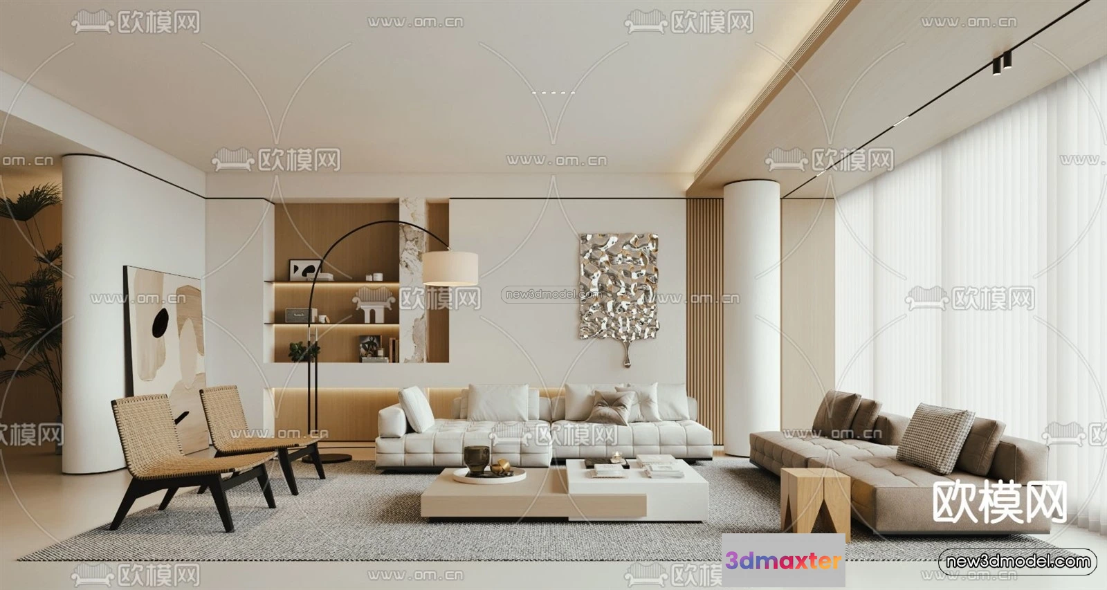 Cream Style Interior 3D Blocks – Living Room 3D Model – 125 – Living room 3D Model – VRAY