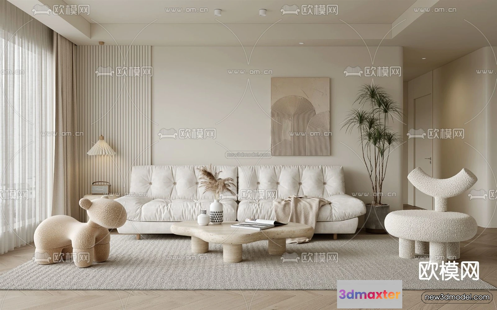 Cream Style Interior 3D Blocks – Living Room 3D Model – 133 – Living room 3D Model – VRAY