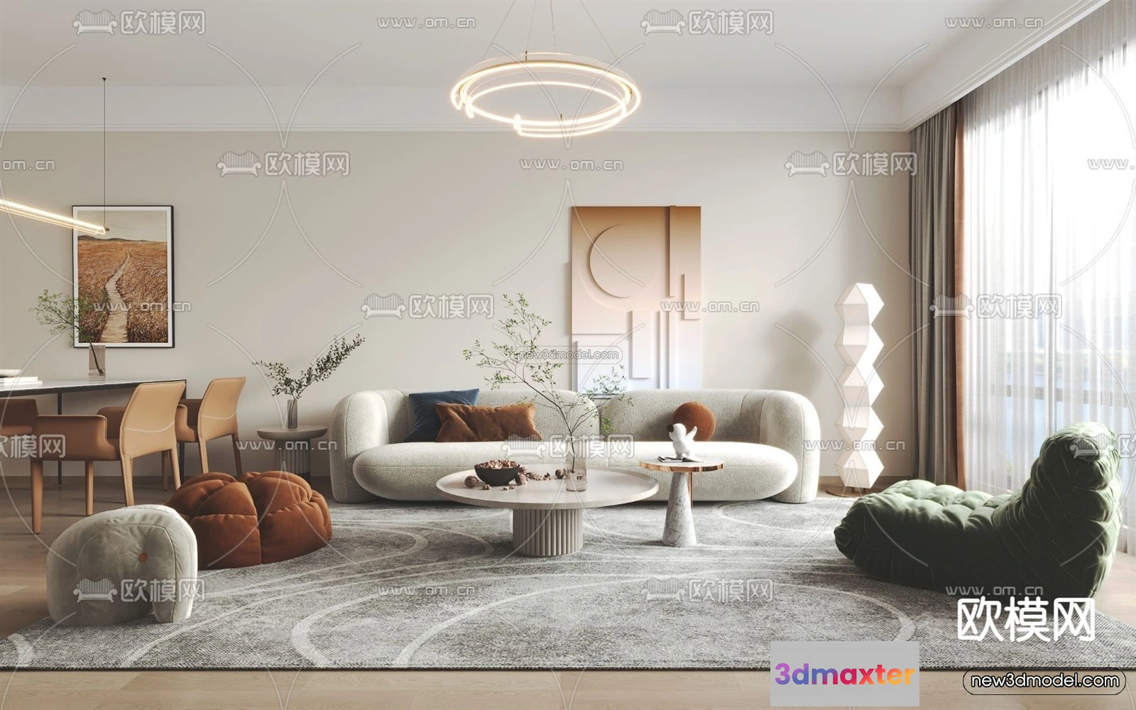 - Name: Cream Style Interior 3D Blocks – Living Room 3D Model – 148